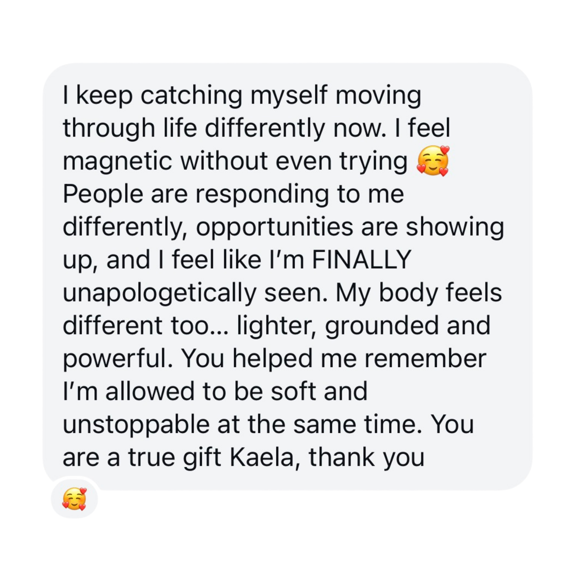 This work is about releasing that weight and stepping into a life where ease and power coexist. Where your days feel aligned, your choices feel confident, and your energy is yours to steward.